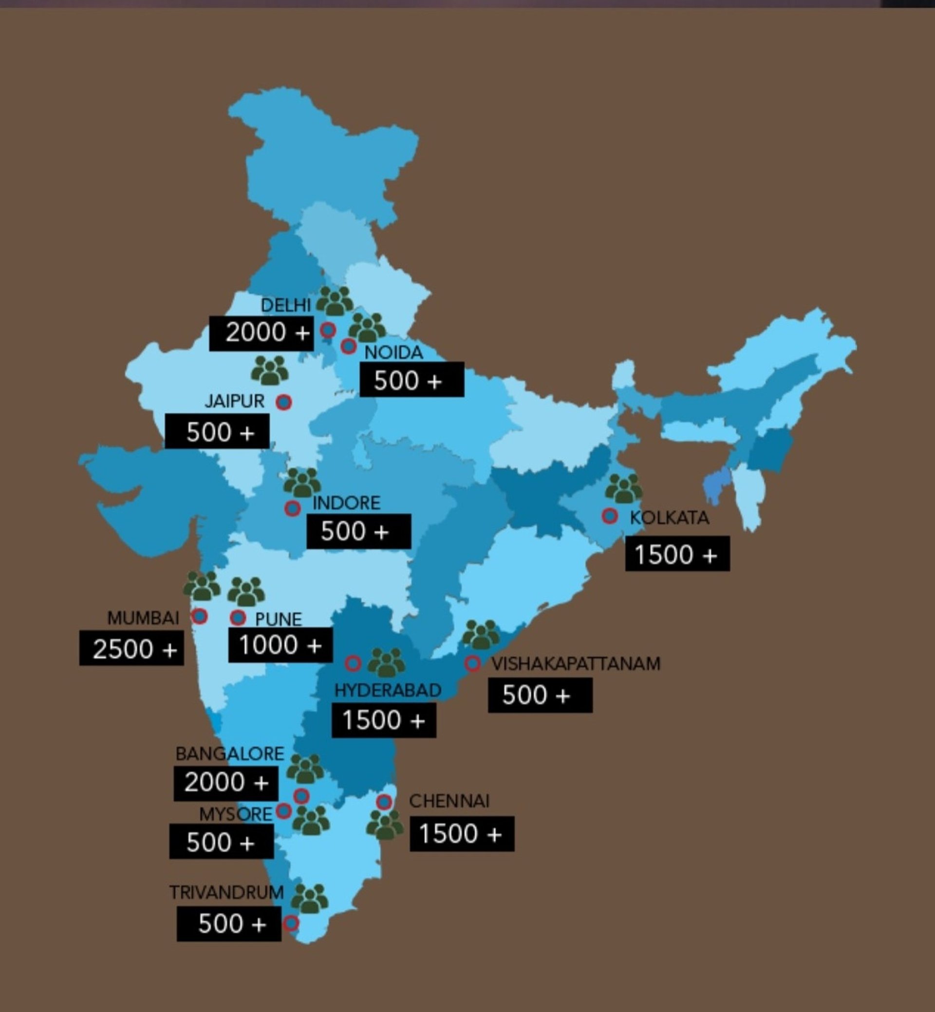 Kolkata, Bangalore, Pune, Goa, Hyderabad, Jaipur, Bhopal, Kanpur, Lucknow, Bhubaneswar, Patna, Ranchi, Ahmedabad, Chandigarh, Delhi, Gurgaon, Noida, Punjab, Haryana, Maharashtra, Gujarat, Rajasthan, Bihar, Jharkhand, Tripura, Uttarakhand, Kerala, Tamilnadu, Karnataka, Assam, Chhattisgarh, MP